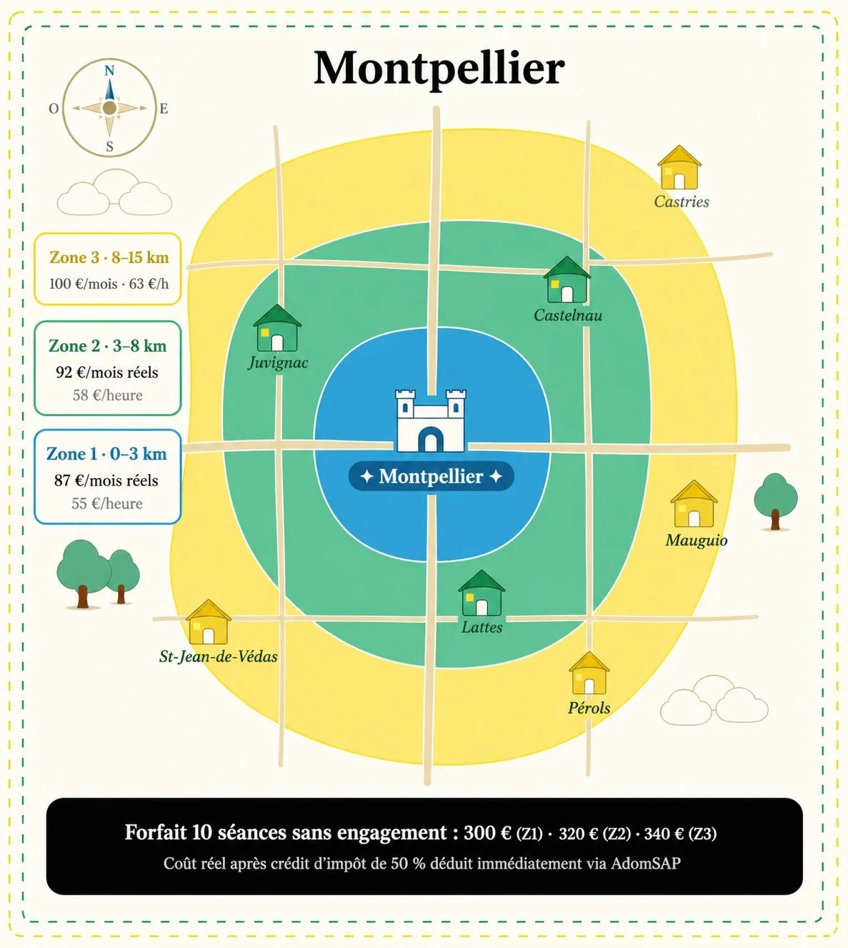 * Coût réel = montant facturé après crédit d'impôt SAP de 50 %, déduit immédiatement via AdomSAP.